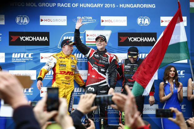 Aztán amennyire feszült voltam a második futam előtt, olyannyira felszabadultam, amikor első helyen intettek le a kockás zászlóval. Az az óriási nyomás, ami rám telepedett, egyetlen pillanat alatt szertefoszlott bennem – amikor kiszálltam az autóból, ezt az örömöt és felszabadultságot láthattátok rajtam. Hiába volt ez már a negyedik futamgyőzelmem a WTCC-ben, teljesen új tapasztalatot és élményt jelentett számomra. Az önbizalmamnak is jót tett, hogy a legnagyobb elvárások közepette is hiba nélkül tudtam versenyezni, erre a jövőben is építhetek majd. Büszke vagyok arra is, hogy én hoztam az idény első nem citroënes futamgyőzelmét a mezőnyben. Ebből a szempontból egyébként hasonlóan alakul a mostani szezon, mint a tavalyi, hiszen 2014-ben is a harmadik versenyhétvégén, a hungaroringi második futamon sikerült egy másik márkának megtörnie a franciák egyeduralmát. Akkor Gianni Morbidelli a Chevrolettel, most én a Hondával.